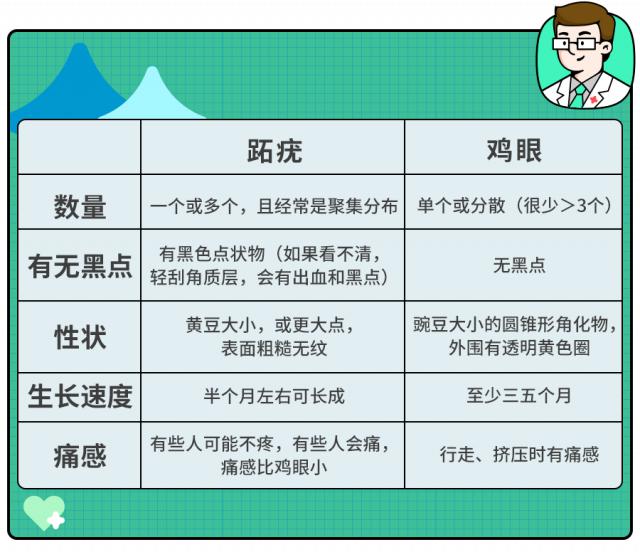 另外,要特别注意区分跖疣和鸡眼。