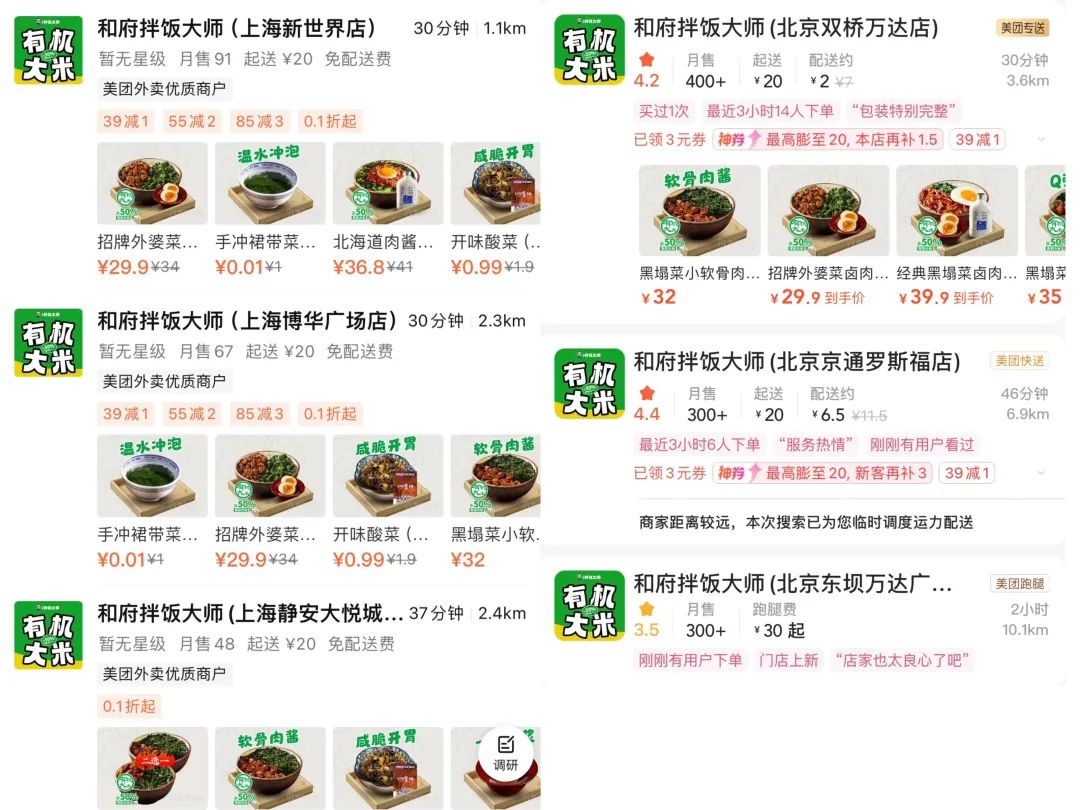 最近,和府捞面推出了以拌饭外卖为主的“和府拌饭大师”。