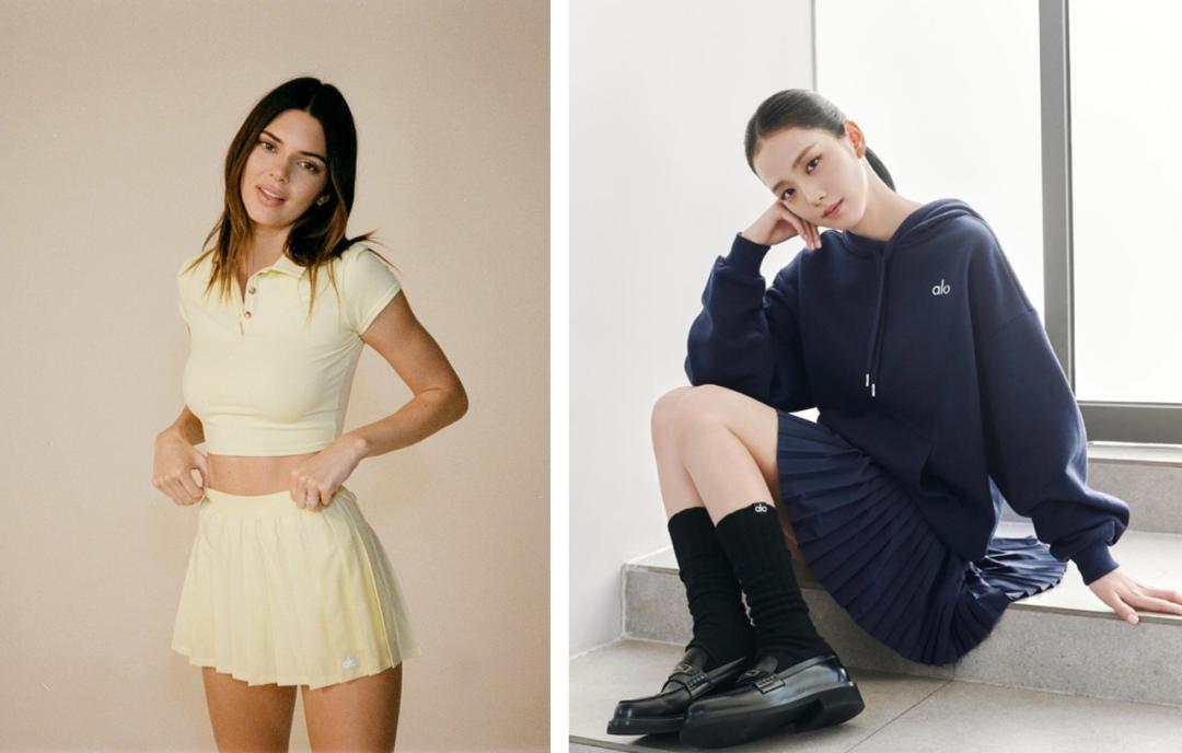 2021年,Alo Yoga正式宣布与卡戴珊家族的金小妹肯豆合作。后者是好莱坞最受欢迎的时尚女神之一,仅ins平台就拥有2.9亿粉丝。从干净清爽的海贝蓝套装到明亮俏皮的网球裙,从上身的leggings拍摄大片到穿着黑白套装遛狗,肯豆的Alo让太多的新中产阶级看到了这个服装品牌的魅力。