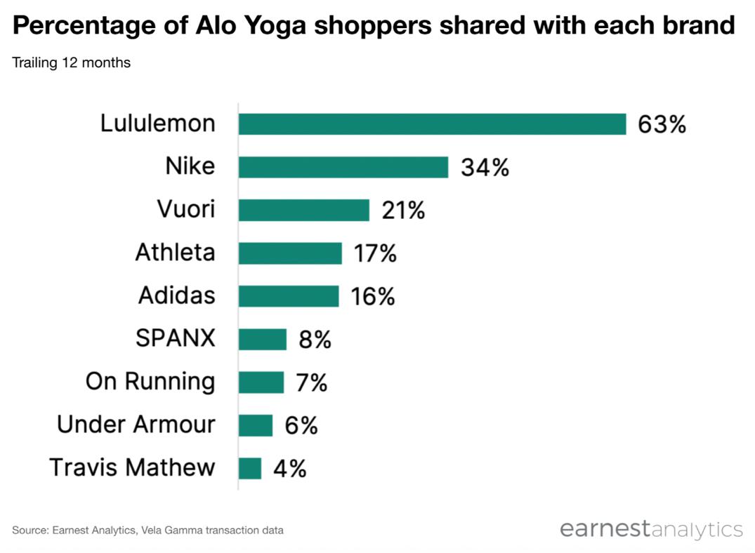 Earnest今年4月发布的信用卡数据也显示,Alo Yoga的份额正在稳步增长。同时,报告称购买了Alo。 Yoga63%的人曾经是lululemon客户,两个品牌的客户重叠度极高,这让很多人在未来变得咄咄逼人。 Yoga被认为是后者最大的竞争对手。
