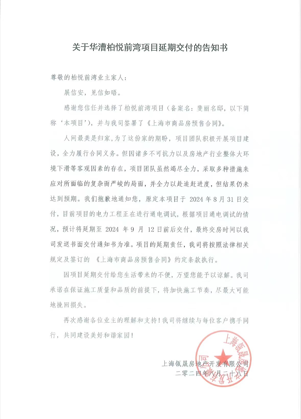 开发商第三次发布延迟交付通知书