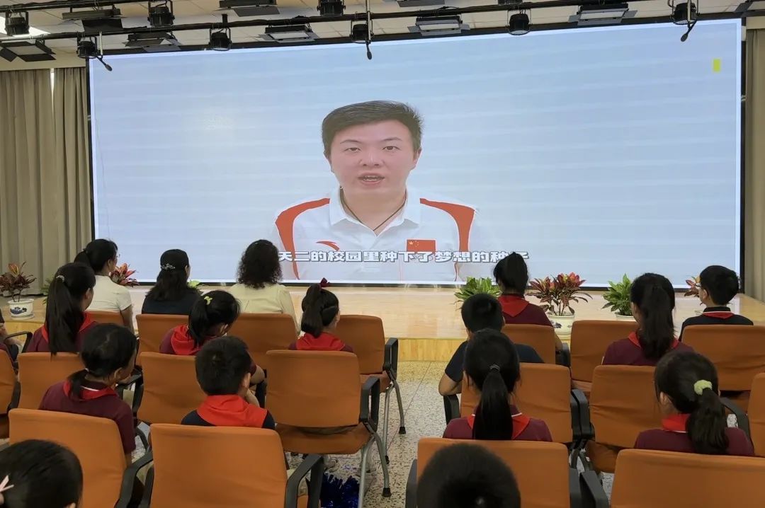 在巴黎奥运会上,射击运动员王鑫杰和田径运动员宋佳媛获得了铜牌,两人都毕业于天山二小学长宁地区。开学第一课,同学们回顾了自己在巴黎奥运会上的精彩瞬间,惊喜地收到了奥运健儿王鑫杰的演讲视频。