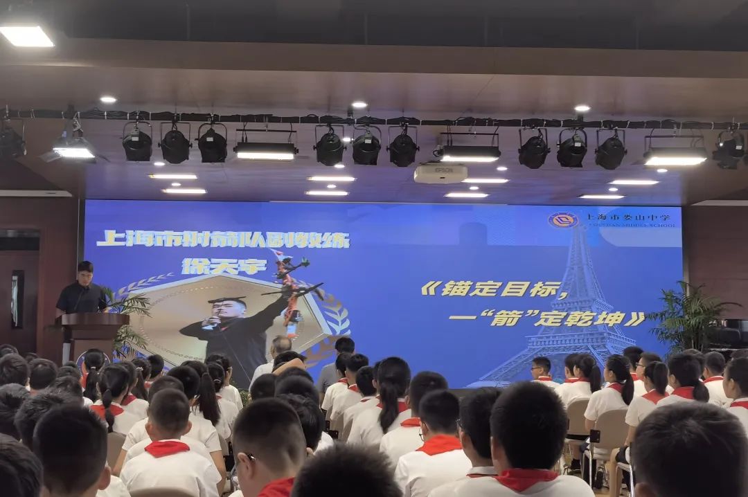 奥运会观察室”、“原地摸高”挑战,奥运主题名片...一开学,娄山中学校园里就充满了奥运会。开学典礼上,上海射箭队男子队副教练徐天宇讲述了球员背后的训练故事。上海学生射击金牌得主、娄山中学射击运动员戎承也分享了暑假看比赛的日记。