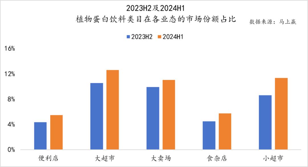 总的来说,杏仁乳在小业态中占有更大的市场份额,杂货店和小超市优势明显。由于礼品因素的影响,2024年H1在各种业态中明显增加。