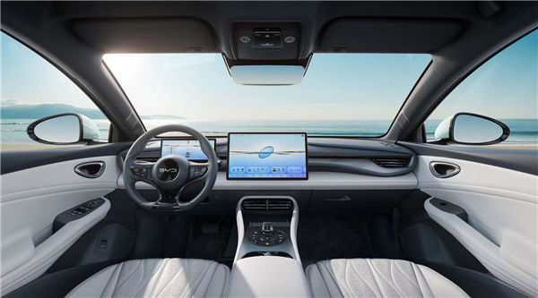 新款汽车外观持续全新的海洋美学理念,配有隐藏式门把手,两段尾翼。简洁的内饰设计是主色调。