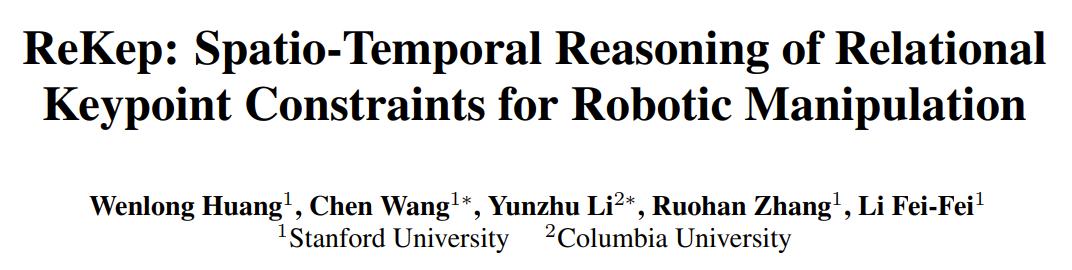 论文标题:ReKep: Spatio-Temporal Reasoning of Relational Keypoint Constraints for Robotic Manipulation