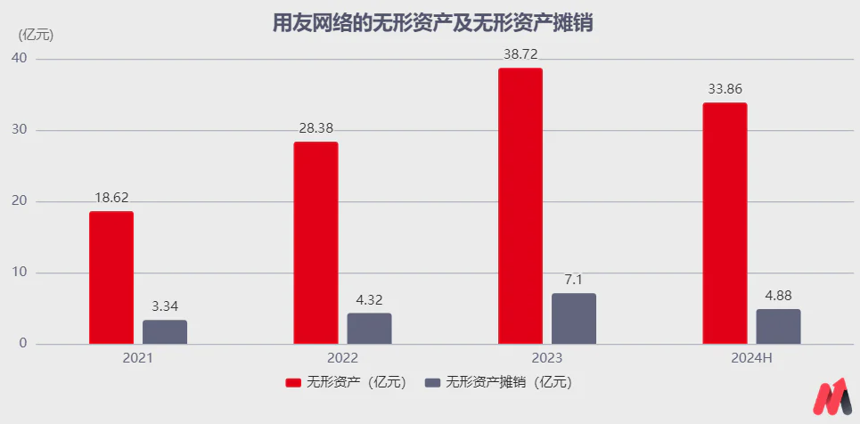2024年上半年,用友R&D投资形成的无形资产摊销额同比增长约1.5亿元。下半年和接下来的几年,公司的无形资产将继续摊销,公司的收入将继续被吞噬。