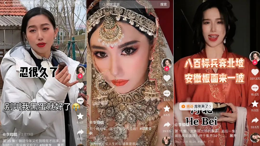 从肉眼可以看出,在某条跑道上赢得更多好口碑的创作者,通常都会把自己的内容做到极致。比如剧情创作者@李蠕蠕,通过对细致生活的观察,生动地再现了职场销售冠军、环球小姐、TVB阔太等一系列经典角色。极致的观察和极致的诠释让@李蠕蠕蠕。 在众多顾客心中,它已成为百变大咖之首,其抖音粉丝数量也一路攀升,目前已突破2400W。