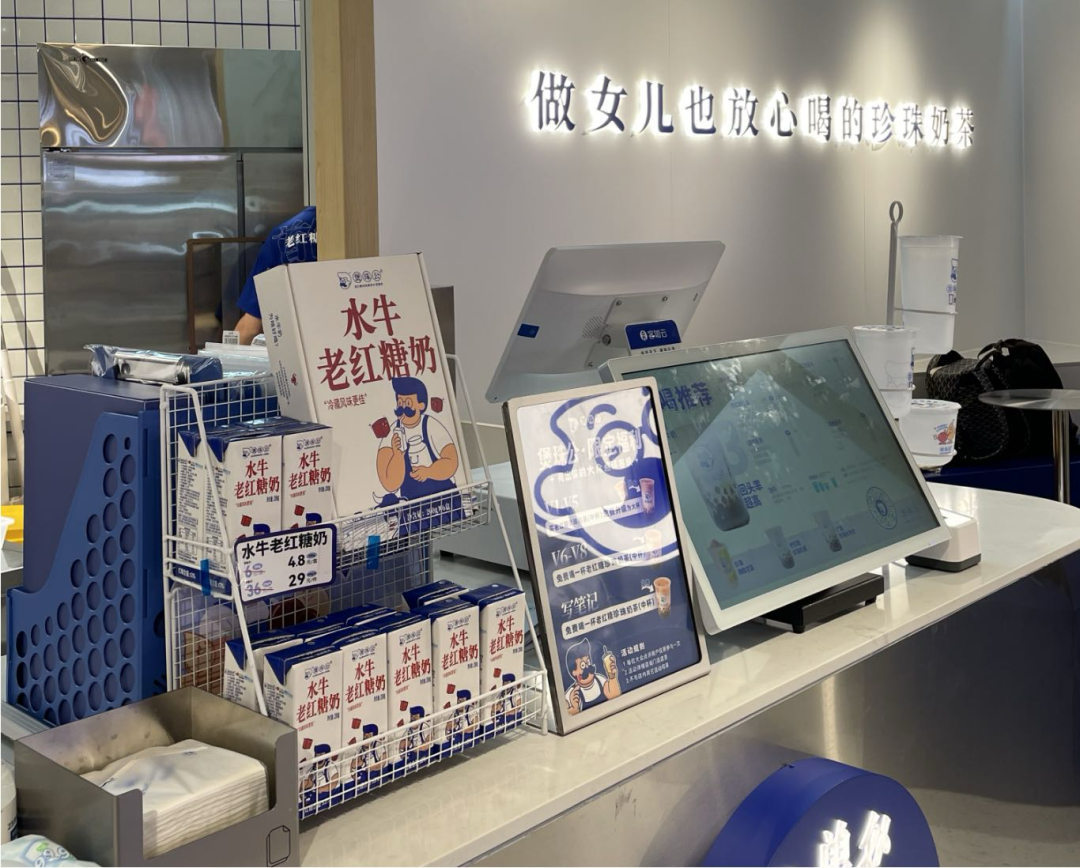 陶珠公进一步升级了牛奶的原料,主要推广广西流行的水牛奶。而且直接在店里放一盒老红糖水牛奶,不仅可以清晰的展示原料,还可以作为新零售扩大收入的来源。目前陶珠公的水牛奶已经进入罗森等便利店渠道。