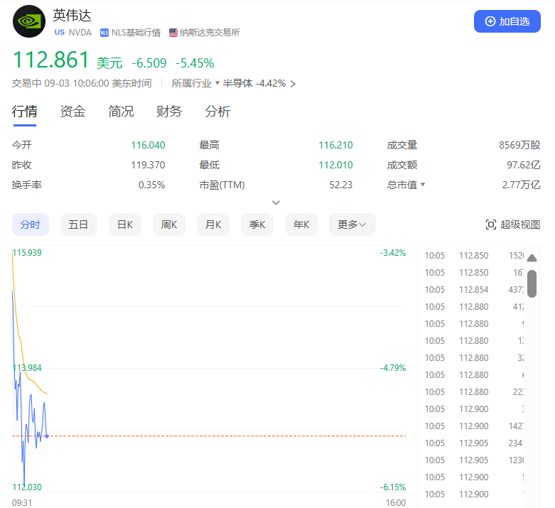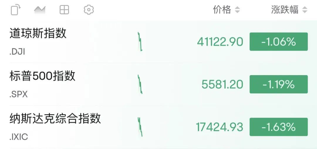 当地时间9月3日,美股三大股指集体低开。截至发稿时,道指下跌1.06%,纳指下跌1.63%,标准普尔500指下跌1.19%。