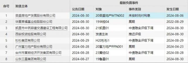 债券负面事件一周