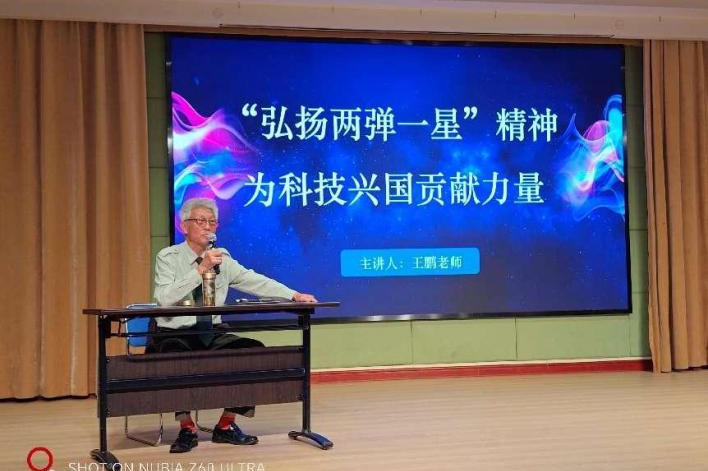 天山二中开学第一课以“科教兴国”为主题,邀请了“两弹一星”的杰出推动者王鹏先生讲述自己的科研经历和人生感悟。前辈们热情动人的故事激励着学生们铭记“两弹一星”的精神,把爱国主义转化为努力学习的动力。