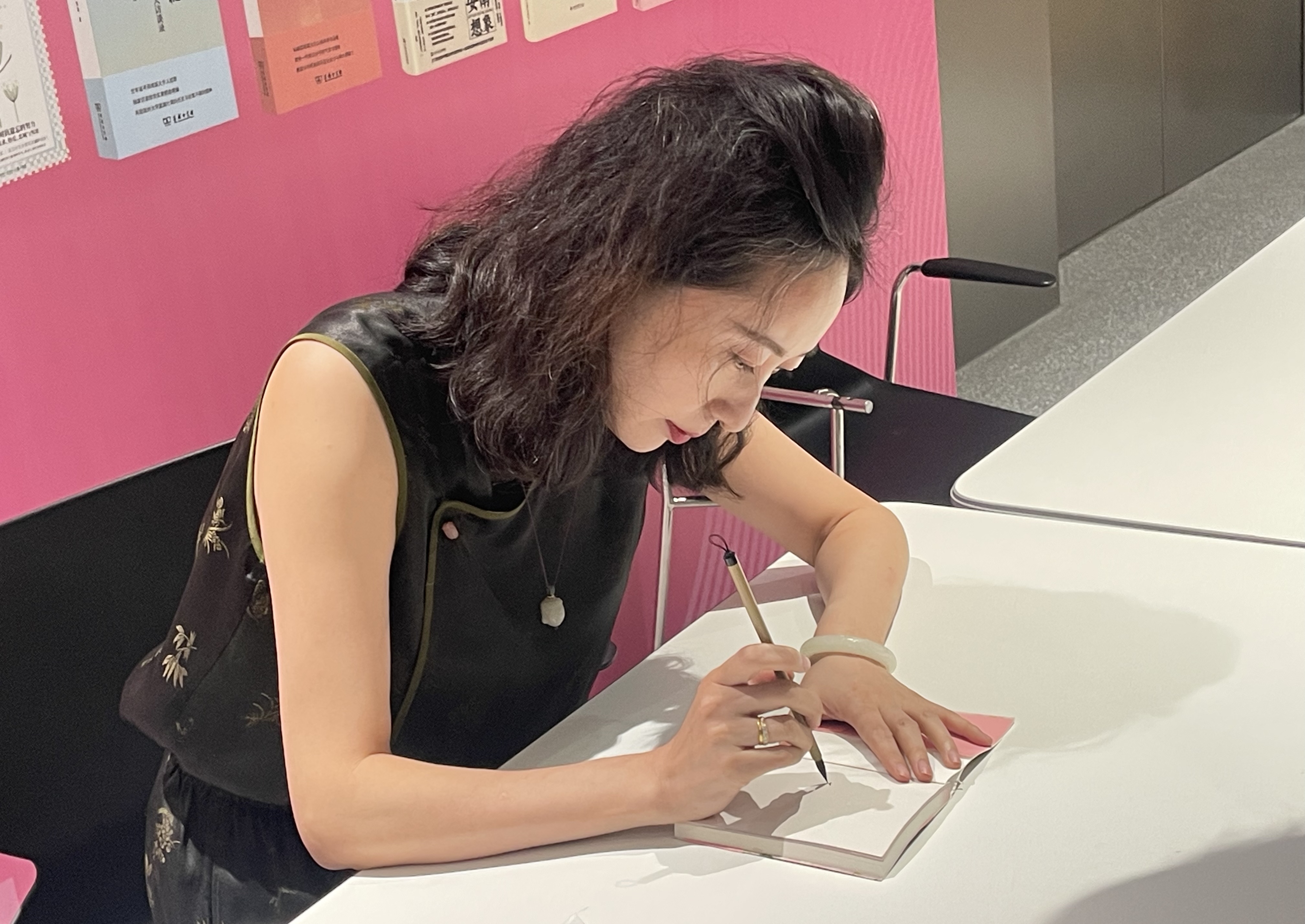 无论她去哪个活动,她都会随身携带一支笔、一块墨水和一个砚台。她会当场磨墨,一笔一划地写下来,然后恭恭敬敬地拿给对面的每一位读者。如果有读者告诉她这篇文章真的让人哭,写出来需要勇气,她也会哭,不会“谢谢,谢谢”。