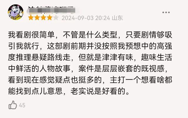 打 4、5 明星网友,觉得这部剧有趣,人物鲜活,生活气息浓厚,不是那种非常耗脑的悬疑剧,细节有趣。