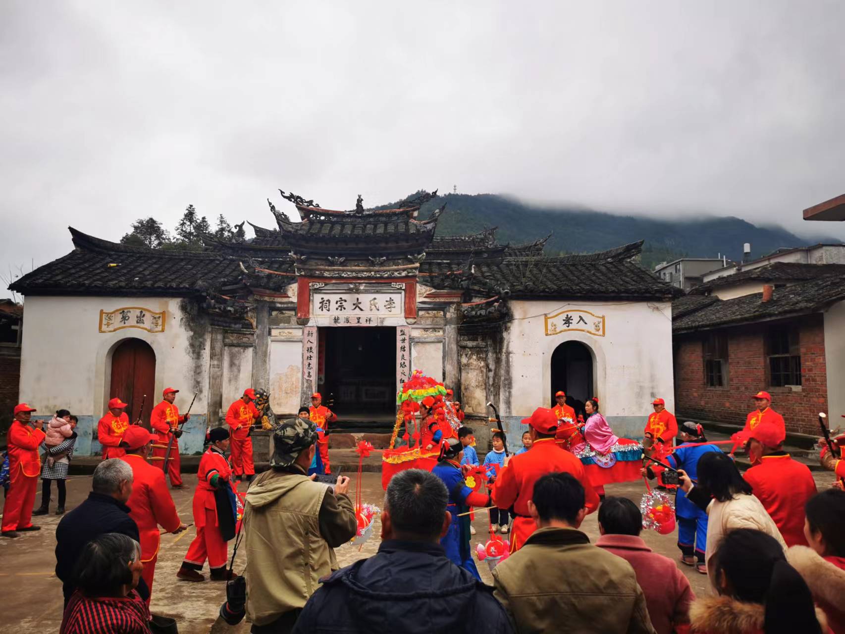 赖坊乡赖氏祖庙于2023年2月举行古事活动。 三明市文明办 供图