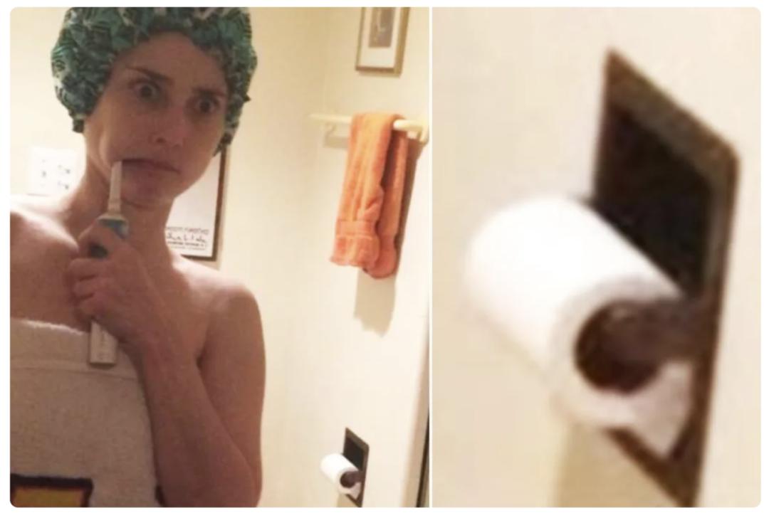 一位女士说,她把这张自拍放在自己Tinder的主页上。一年过去了,23个男人来告诉她卫生纸的方向错了。