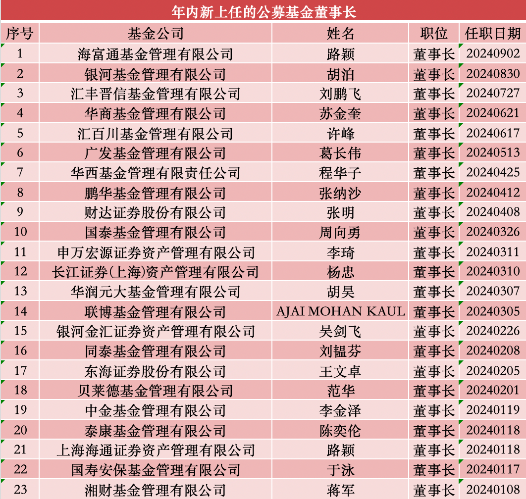 据Wind数据分析,今年年初以来,已有26家公募董事长发生变化,其中23名公募基金董事长,包括广发基金、鹏华基金、国泰基金、银河基金、贝莱德基金、联博基金等,今年新任。