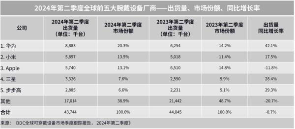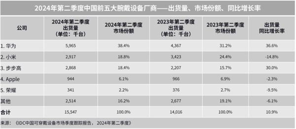 第二季度,华为全球和中国腕戴设备出货量均达到顶峰 小米第二