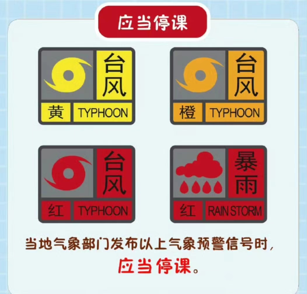 据广东气象网报道,目前,台风预警信号在广东各地都有效。记者从广东省教育部门获悉,湛江市、珠海市、阳江市、茂名市、江门市、台山市等多个地方为做好学校防御台风工作,确保师生安全,已发布学校停课通知,复课时间另行通知。