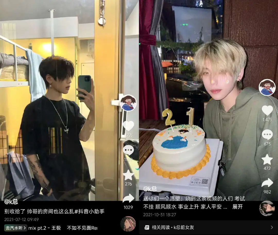 “k总”不是新手。早在2020年1月20日,第一个视频就在Tiktok上发布了。但一开始,“k总”走的是潮男路线。微微扬起下颌,紧绷表情,对着镜子自拍,稳定一个冷酷的男神。