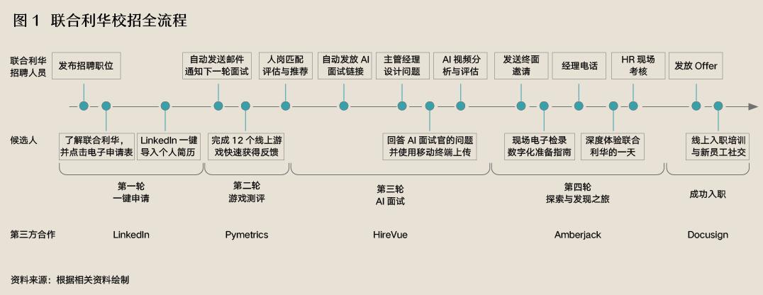 联合利华的AI技术给初出茅庐的大学生留下了深刻的印象:在社交平台上刷出感兴趣的招聘信息;网上申请表不需要填写,直接在领英。(LinkedIn)一键导入账号;在手机上玩了20分钟的神经科学游戏,就是知道和申请职位的匹配程度;面试的时候没有看到面试官,而是呆在公寓里和AI机器人进行人机交换;快乐地得到Offer,DocuSign直接电子签名,足不出户完成签约。