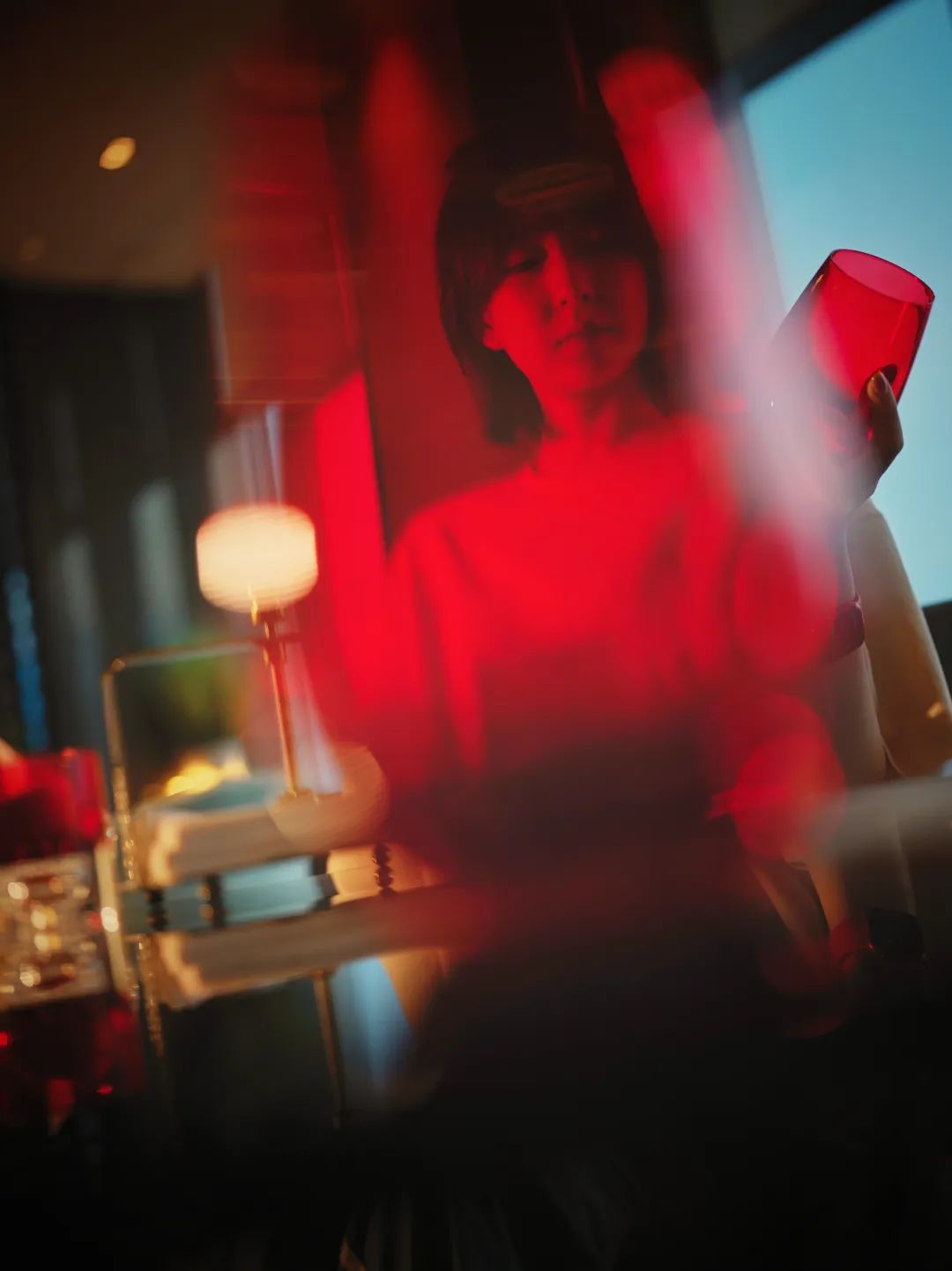 重庆- 2024年8月31日,桌子对面的姑娘摇着红酒杯。拾城 崔力