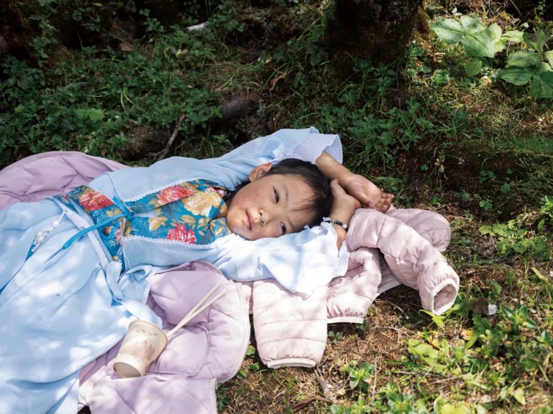 云南(云南)迪庆- 孔雀山野营2024年8月28日休息的女孩。拾城 蔡山海