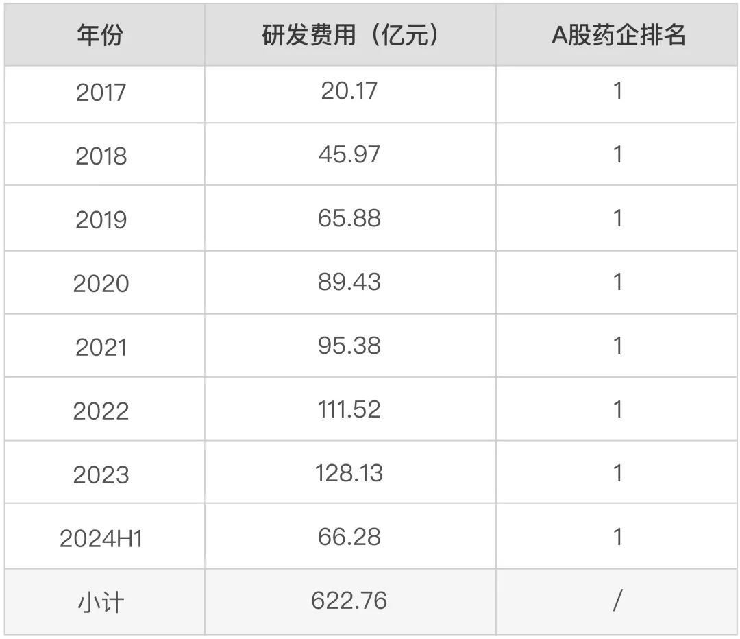 事实上,百济神州在R&D支出上的领先地位并不是昙花一现。自2017年以来,百济神州在a股制药公司的R&D成本一直居榜首,公司在R&D支出上的投入仍在增加。