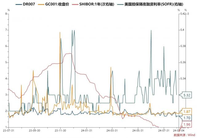 本周,央行公开市场已经净回笼。 1.2 万亿元,尚未影响银行间市场资金宽松状况,隔夜质押式回购加权利率小幅下降。