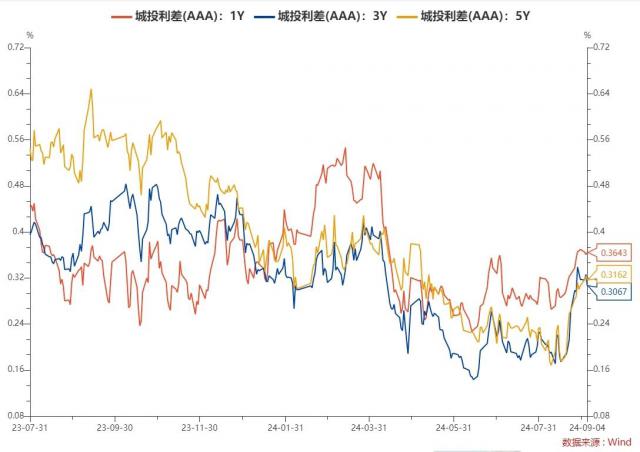 5. 最近城投债(AAA)每个期限的利差走势和数据。