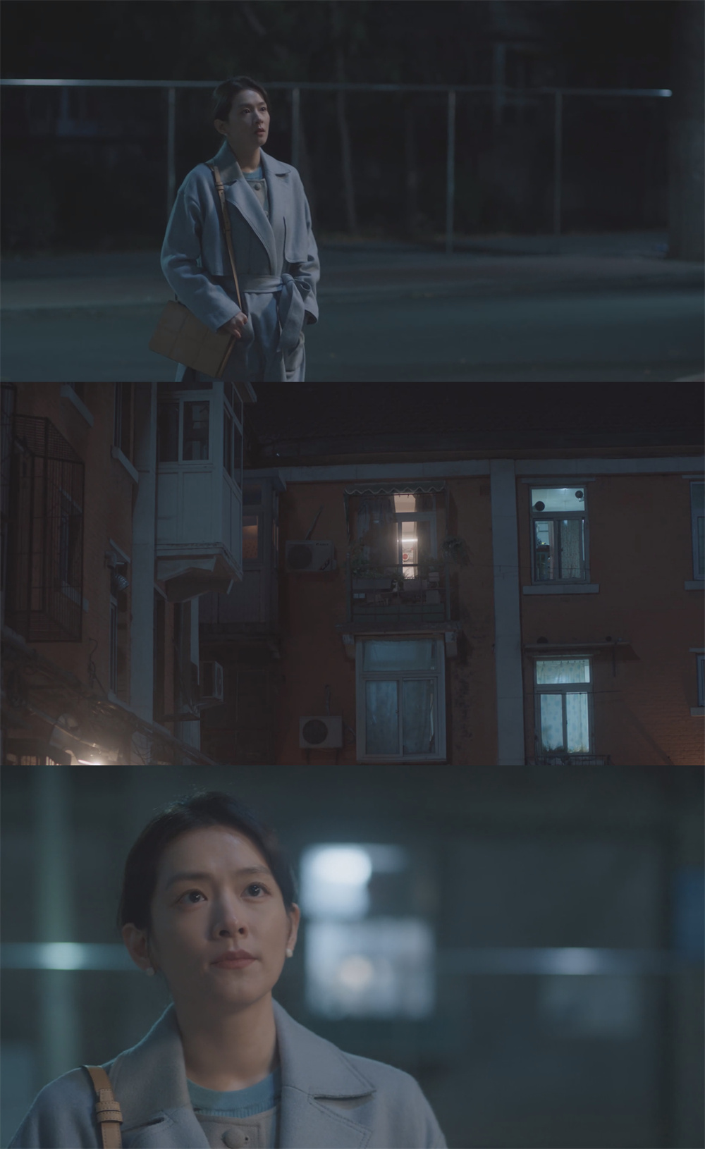 在谢美蓝和沈磊讨论这件事之前,这部剧首先拍摄了这样一个镜头:谢美蓝半夜下班回家,大步走到小区后,远远地看着旧出租屋里的灯光。她的步伐有点慢,她呼吸了很久,似乎鼓足了勇气,似乎在拖着疲惫的脚步回去之前,她已经卸下了负担。