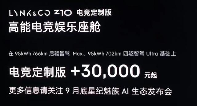 电子竞技版只有两款高配车型可以安装,涨价 3 万起,具体多少钱,要在星纪魅族发布会上过一段时间才知道。