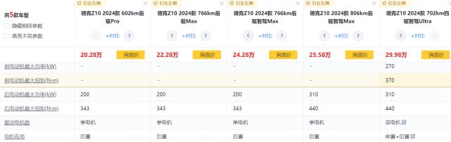 Z10 四轮驱动型号的电机功率是 580kW (前 270kW 后 310kW ),和极氪 001 完全一样,但是它全部为磷酸铁锂,零百加速 3.5s ,而极氪 001 三元锂版本可以做到 3.3s 。