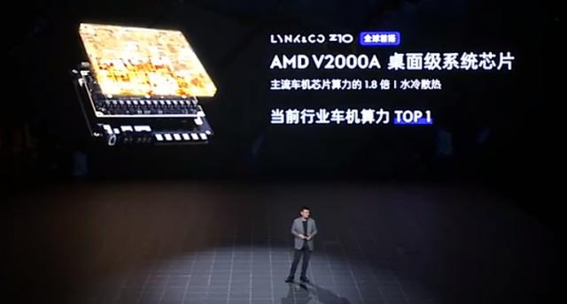 这次领克还是很熟悉的 Flyme Auto 汽车,但是芯片已经升级了,这次首发 AMD 的 V2000A 官方表示,计算率可以达到高通芯片 8295 的 1.8 倍。