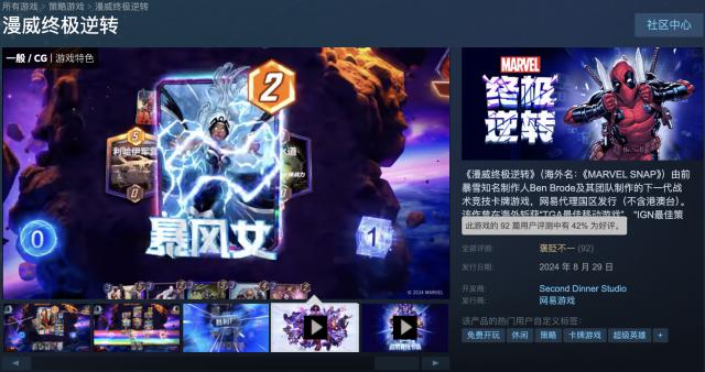 炉石前总监加漫威漫画 IP ,这款游戏的质量似乎很稳定。