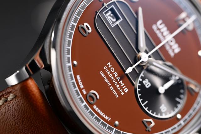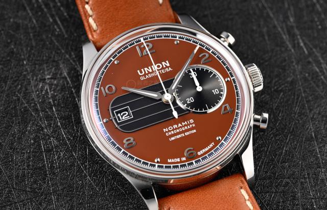 [ 腕表之家 手表品评 ] 每一个夏天都悄悄地结束了,不知不觉就穿上了毛衣,怕冷的朋友,也许已经 摘下自己的钢链表,戴上皮带表。温暖而复古的色调似乎也带有秋天的气息。如果你看过香山的枯叶,你可能对秋天的颜色印象更深,不同的橙色构成了美丽的秋景。本文的宇联单眼记时盘,整个表格特别符合秋天的气氛。(型号:D012.427.16.297.09