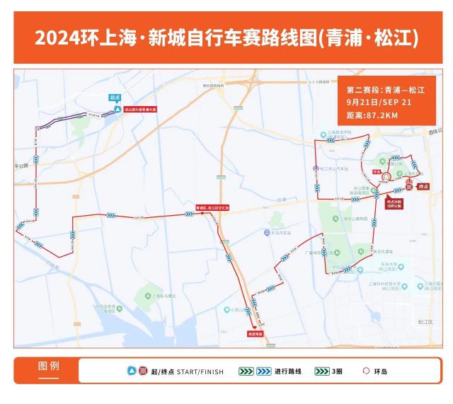 按赛程安排,9 月 19 比赛启动仪式和外滩骑手巡游活动将于日前在世界会客室举行,参赛骑手将采用外滩骑自行车感受城市魅力。9 月 20 日本第一阶段将在嘉定新城举行,全程约会。 115 公里。9 月 21 日本第二阶段将在青浦新城至松江新城,全程约。 87.2 位于松江佘山国家森林公园、广富林郊野公园等地的公里,经过朱家角古城、淀山湖风景区,将成为比赛道路。9 月 22 日本第三阶段将在奉贤新城至南汇新城,全程约会。 96.5 公里。