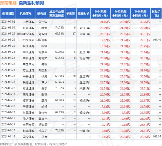 深南电路 2024 年中报告显示,公司主要收入 83.21 亿元,同比增长 37.91%;归母净利 9.87 亿元,同比增长 108.32%;扣非净利润 9.04 亿元,同比增长 112.38%;其中 2024 2008年第二季度,公司单季度主营收入 43.6 亿元,同比增长 34.19%;单季度归母净利润 6.08 亿元,同比增长 127.18%;单季度扣除非净利润 5.69 亿元,同比增长 130.49%;负债率 投资收益42.34% 290.3 一万元,财务费用 -872.23 万元,毛利率 26.2%。