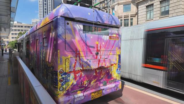 在 71 在路的终点站,许多乘客被这辆主题彩车的“美”所吸引,停下来观看并拍照。一位乘客说:“从远处看,我以为是观光巴士。当我仔细看时,我意识到上海有许多著名的景点,非常美丽、多彩和明亮。看到这辆车,我期待着光影节的到来。”