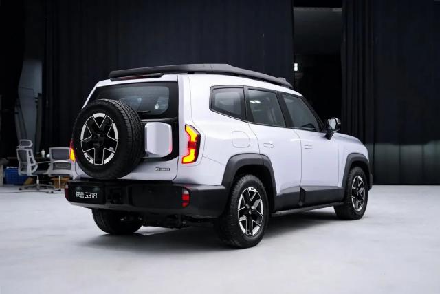 尾部方面,插件备胎和侧开尾门没有缺阵,进一步增强了硬核越野气息。值得一提的是,备胎杠是独立设置的。两边的“ C “形状尾灯组与正面设计相对应,提高了整车的识别度。另外,深蓝色 G318 原厂扩展件还包括电动踏板、背包包等,并支持牵引装置的选择,最大拖拉质量可达 1600 KG。
