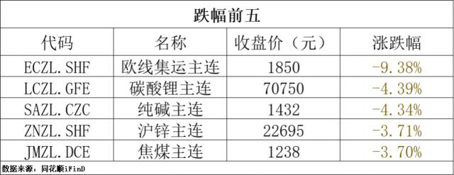 9 月 5 当天,国内大部分商品期货收跌,欧线集运跌幅超过 碳酸锂、纯碱降低9%以上 沪锌、焦煤跌幅超过4% 3%;