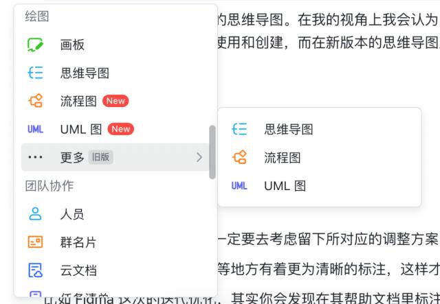 比如思维导图的迭代优化会出现在飞书文档之前。在最初的版本中,思维导图以旧版本的形式呈现,如下图所示。