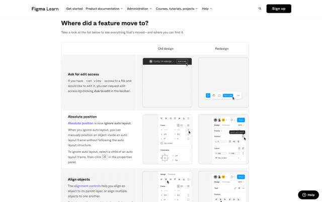 例如 Figma 这次迭代优化,其实你会发现它的帮助文档中的标注非常详细,我们可以通过标注的内容来快速理解它的变化。