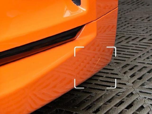 当这个梦想家送来检车时,我们发现左前门上有一个 2 一个很小的掉漆点,这也是车主来贴车衣的原因之一,除此之外,前唇下还有划痕。