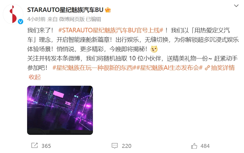 汽车领域的「蛋糕」甚至魅族产品也在去年11月宣布进入汽车市场,逐渐吸引了更多的公司跨界。9月5日,STARAUTO星纪魅族汽车BU官方博客上线,并表示今晚将揭晓。「更多精彩」。