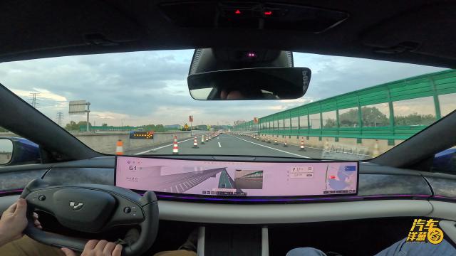 例如,在高速公路上,我们遇到了一条修改线路的道路,这条路虽然有车道线,但是需要我们按线行驶,而且极越越。 07 也无法应对这种复杂的情况。,所以我们只能接管。