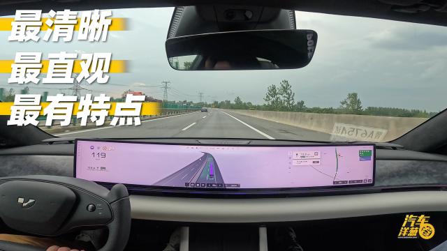 第一,它不同于友商的无图智驾,其界面中的道路和机动车模型都很稳定,不会有那种飘忽不定的感觉。,而如果你愿意的话,也可以右滑让它变大。