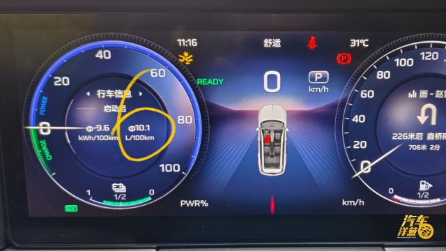 而且速度范围较低,意味着平均油耗也相对较低,在馈电状态下,大概也就是 6-8L 上下。