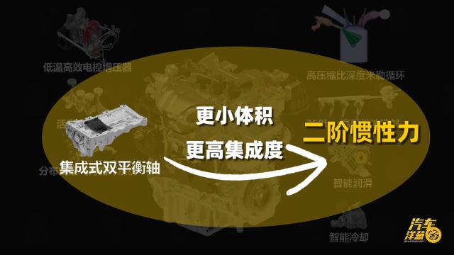 这一优点,除了得益于发动机运行速度较低外,还得益于它采用了一套行业前沿的发动机集成双平衡轴技术,它可以在较小的体积和较高的集成度的基础上,反复运动时,抵消发动机活塞产生的二阶惯性力,使得四缸发动机也可以拥有接近直六和 V12 的平稳感。