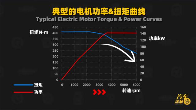 另外,我们知道,虽然电动机起步时可以给出最大扭矩,当转速越来越高时,扭距会逐渐下降。,它还会影响我们在高速行驶时的动力持久性。